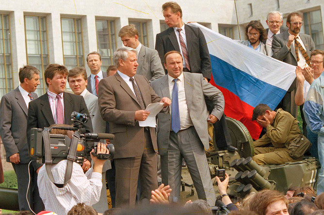 За следующие несколько лет Россия пережила ряд исторических событий, и в центре каждого из них был Ельцин — речь с танка во время путча ГКЧП, расстрел Белого дома, второй президентский срок, «семибанкирщина».