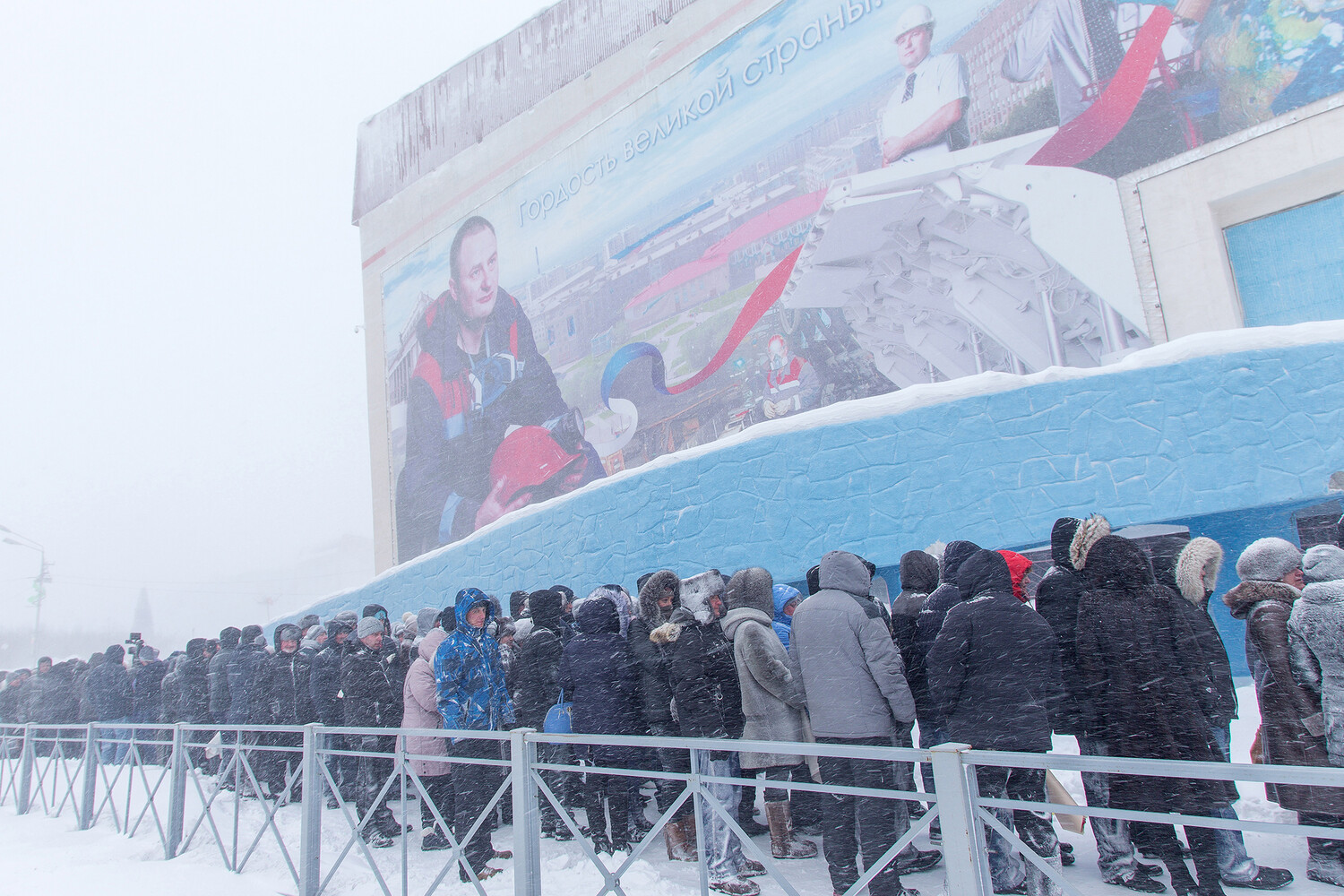 Очередь на церемонию прощания с шахтерами, погибшими в результате аварии на шахте «Северная», 29 февраля 2016 года