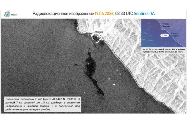 После атаки беспилотников на Туапсе 16 апреля в акватории рядом с портом продолжают убирать разлив нефтепродуктов. Как сообщил оперштаб Краснодарского края, 19 апреля спутник зафиксировал нефтяное пятно в полутора милях от порта. По данным специалистов, загрязнение заняло около 10 тыс. квадратных метров.