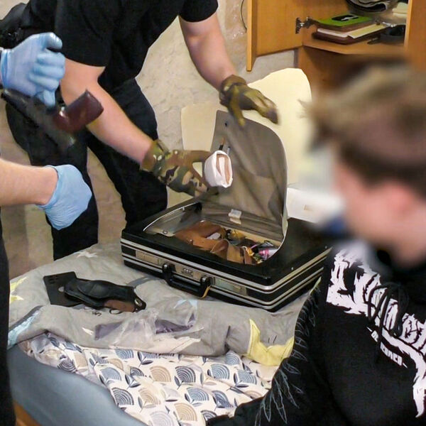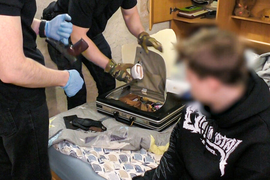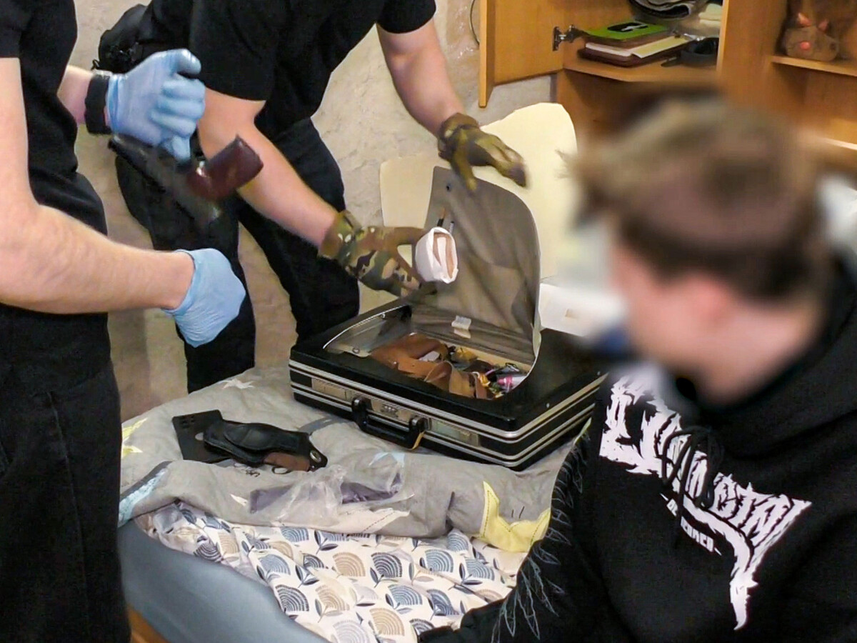 Во время обысков изъяли самодельное взрывное устройство массой около килограмма, гранату Ф-1, пистолет ПМ с глушителем и газовые пистолеты, неонацистскую атрибутику и символику, связанную с украинской организацией.