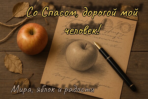 - С Яблочным Спасом! Пусть жизнь будет такой же сладкой, как спелое яблоко, а в доме — мир, тепло и свет.