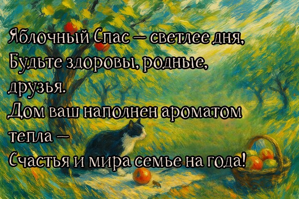 - С Яблочным Спасом! Пускай дом наполнится ароматом пирогов, детским смехом и добрыми новостями.