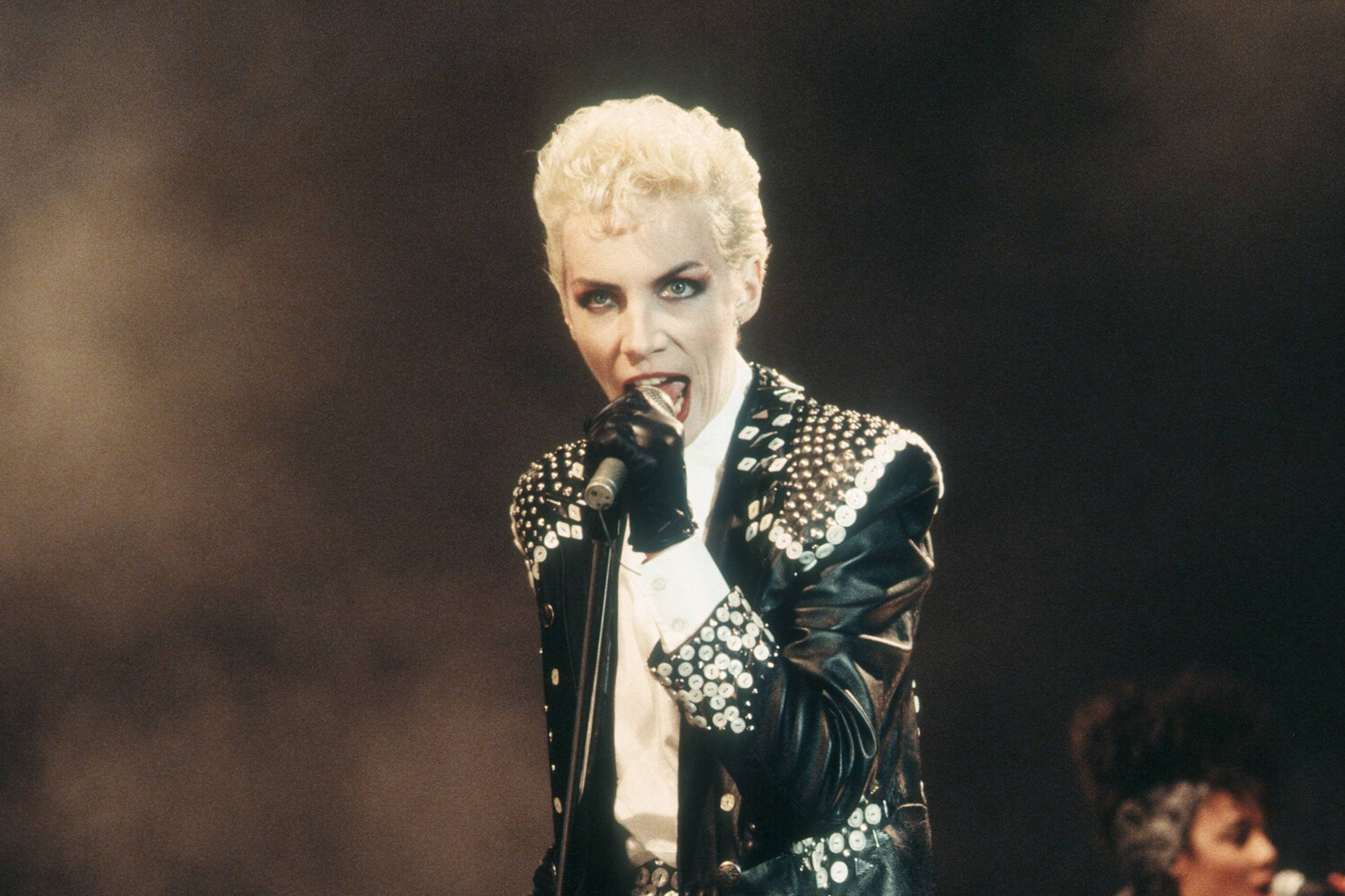 Певица Энни Леннокс во время выступления в составе дуэта Eurythmics, июнь 1987 года