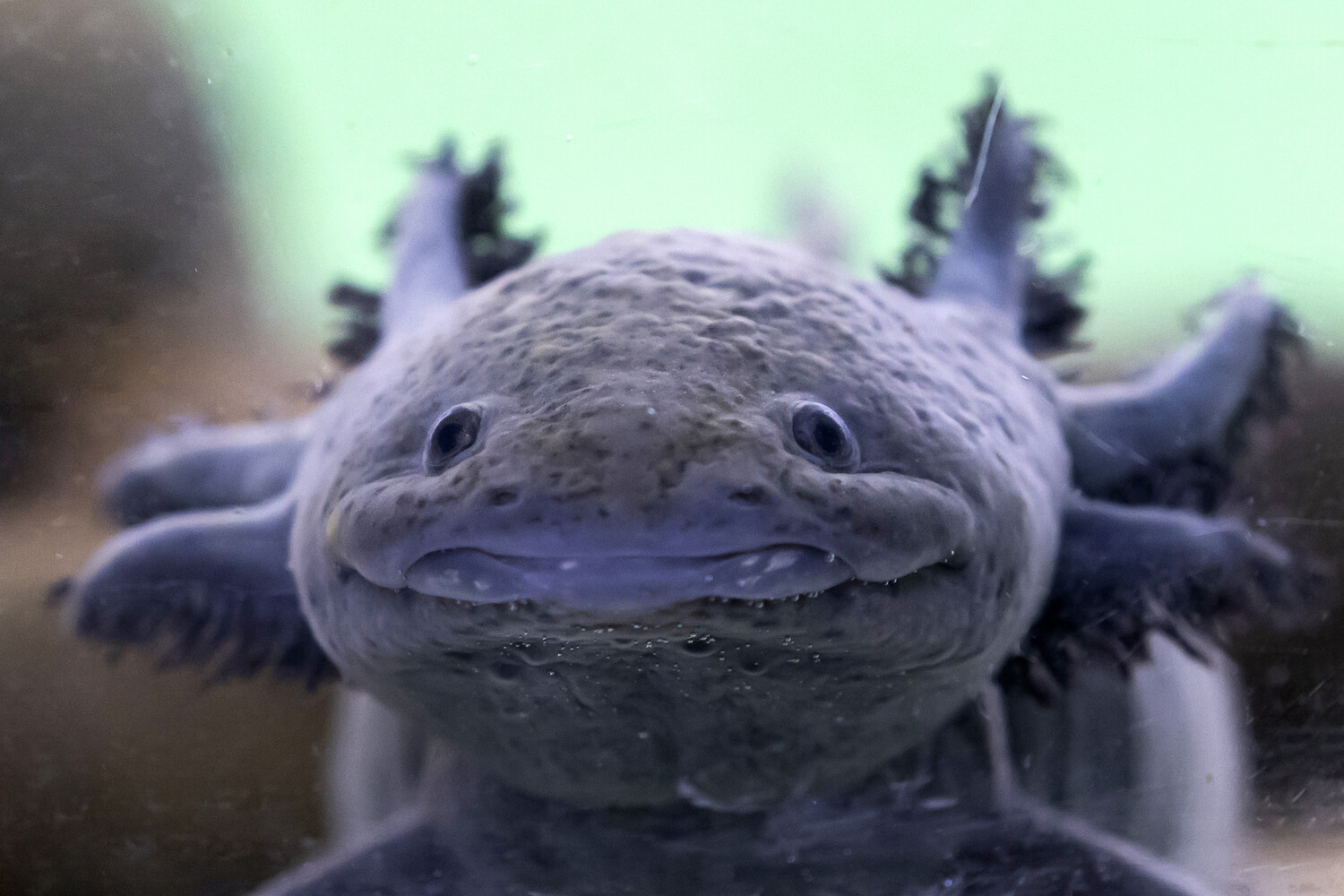 Когда он возвращается в воду, то сможет дышать кожей и легкими до тех пор, пока уровень кислорода в воде не вернется к удовлетворительному. Тогда жабры восстановят первоначальный вид, и аксолотль снова будет дышать с их помощью.