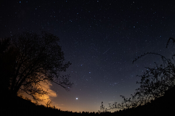 Настройки: установите ISO 1600–3200, диафрагму максимально открытую (например, f/2.8), выдержку от 15 до 30 секунд. Более длинные выдержки приведут к «смазыванию» звезд из-за вращения Земли. Используйте режим серийной съемки или интервалометр, чтобы камера делала снимки непрерывно. Затем можно объединить кадры, чтобы показать несколько метеоров на одном изображении, или создать таймлапс-видео.
