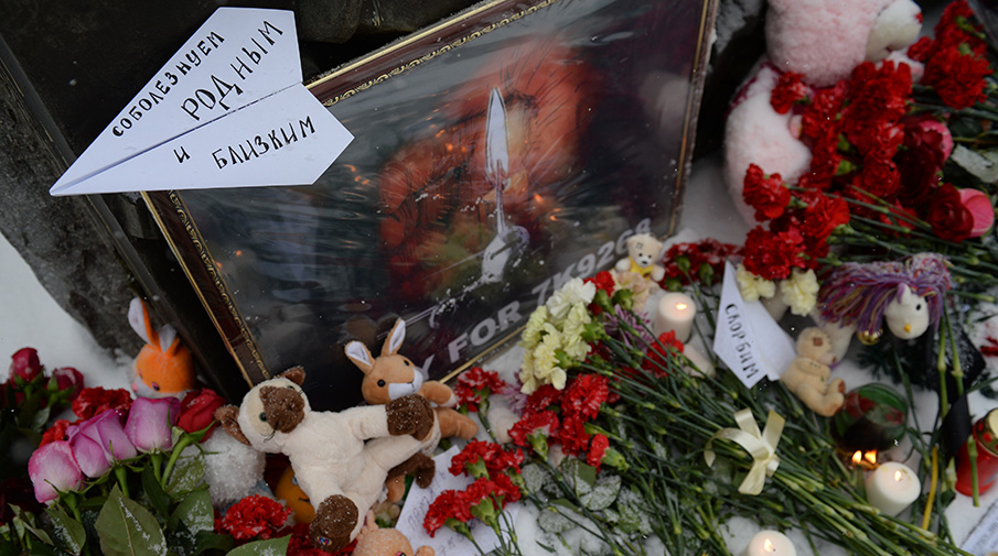 Отмечается, что мемориал «Сложенные крылья» установлен на месте захоронения неидентифицированных останков жертв трагедии.