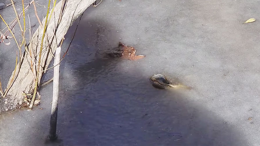 В парке из-за минусовых температур замерзли водоемы вместе с животными в них.
