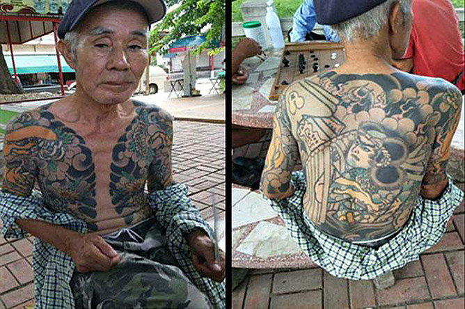 Но фото мужчина с многочисленными татуировками играл в настольные игры во дворе.