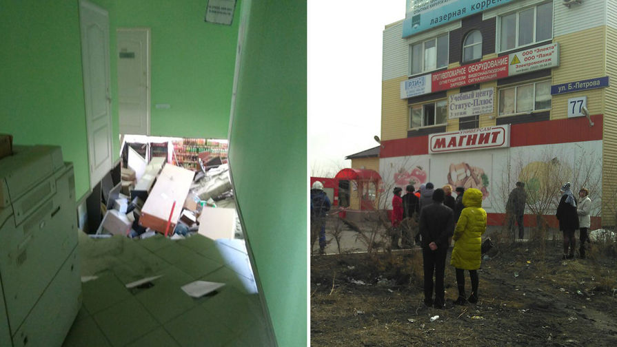«В трехэтажном здании, расположенном на ул. Б.-Петрова, 77, произошло обрушение перекрытия со второго на первый этаж, где располагается супермаркет», — говорится в сообщении.
