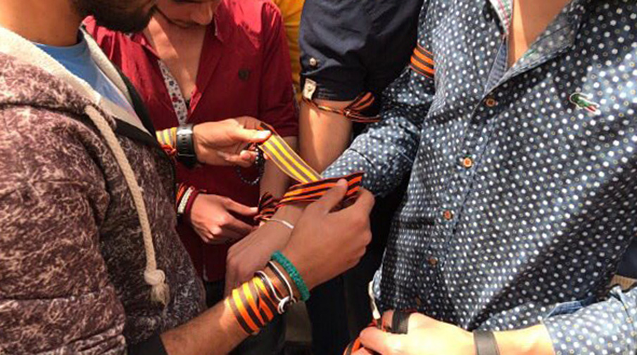 Как отмечается, инцидент произошел 3 мая в киевском аэропорту «Борисполь», куда из Белоруссии прилетели граждане России. Пограничники потребовали снять ленточки с запрещенной в стране символикой.