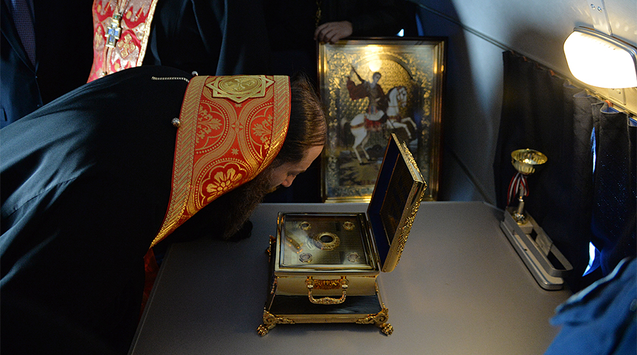 Украинец выкрал мощи Георгия Победоносца из церкви в Донецкой области и принес их к себе домой. Об этом сообщает РИА «Новости» со ссылкой на пресс-службу областного управления Национальной полиции Украины.