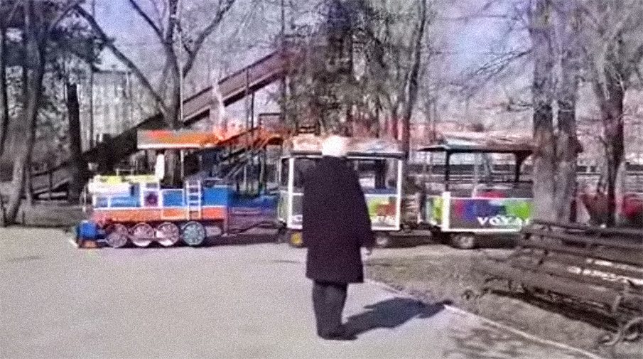 На записи можно увидеть, как паровозик едет под композицию Du hast, громкая музыка раздается на весь парк.