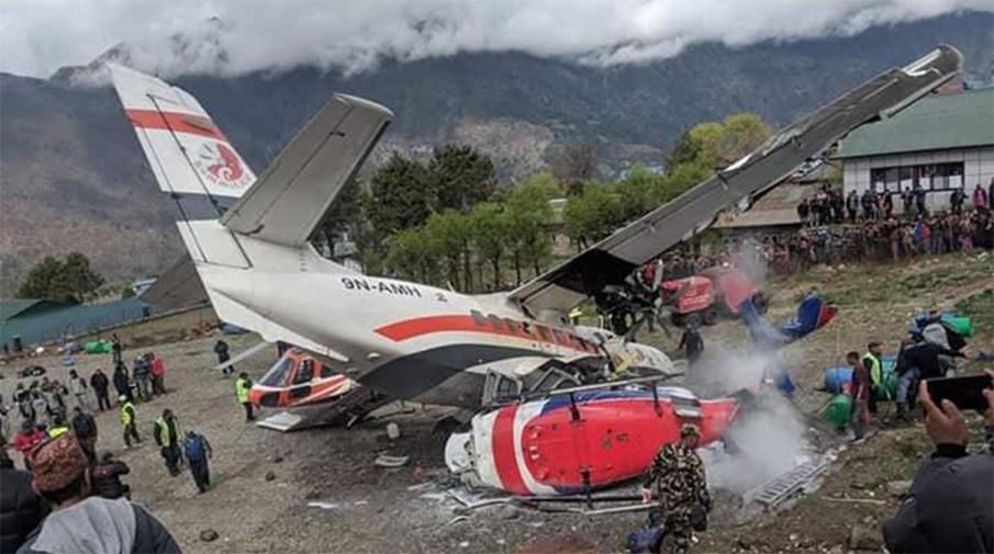 В Непалу в аэропорту возле города Лукла самолет во время взлета столкнулся с двумя вертолетами, передает Nepali Times.