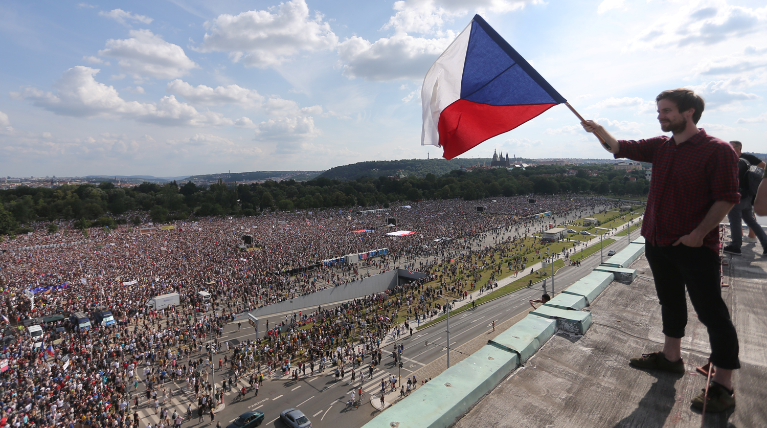 Стоит отметить, что собравшиеся люди пришли на митинг с флагами ЕС и Чехии. Кроме того, на их плакатах написаны лозунги, критикующие Бабиша и требующие его немедленной отставки.
