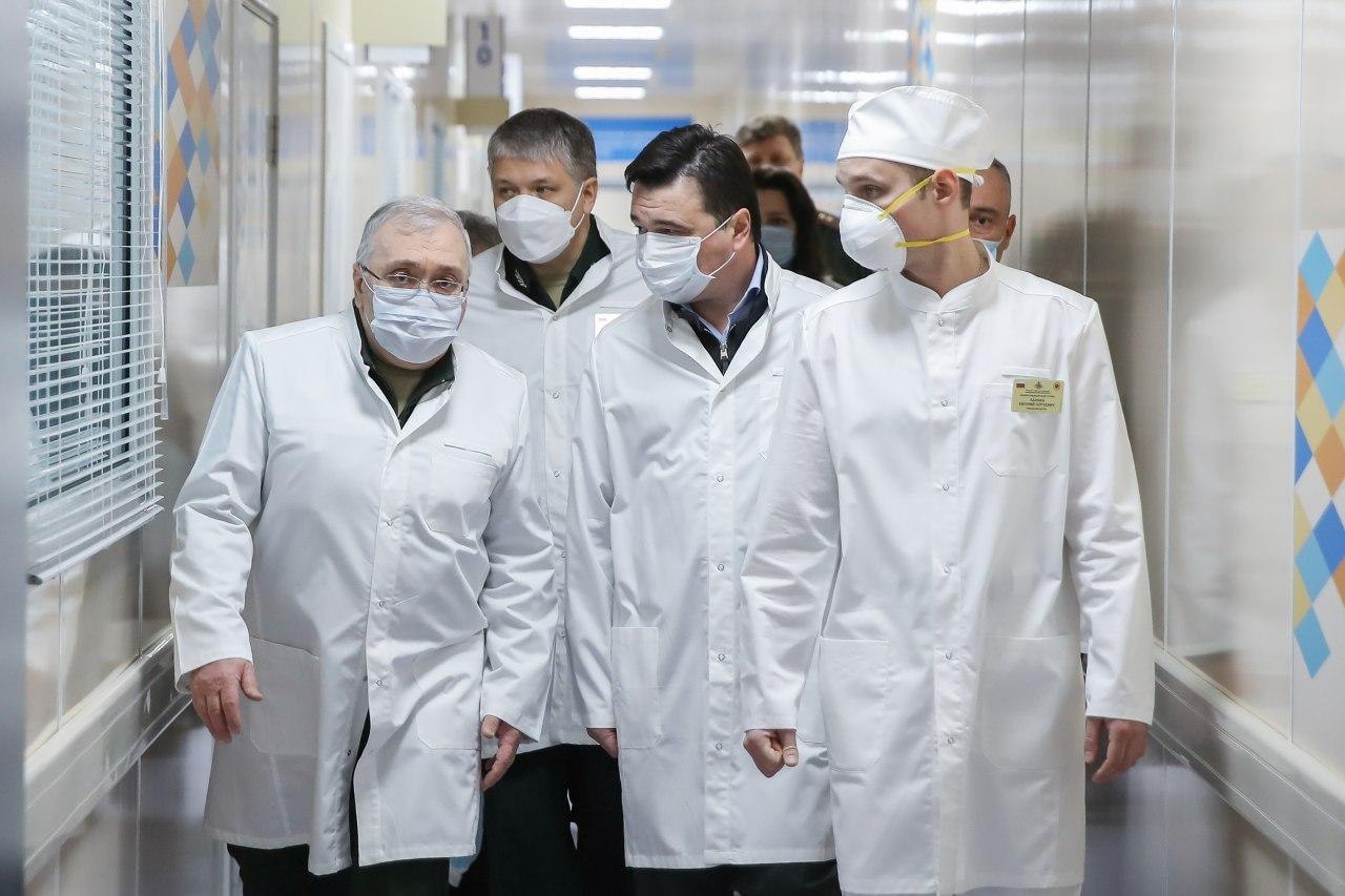 Готовность объекта к приему пациентов проверил Андрей Воробьев совместно с первым заместителем министра обороны РФ Русланом Цаликовым. Старт работе Центра дал Министр обороны РФ Сергей Шойгу в режиме ВКС.