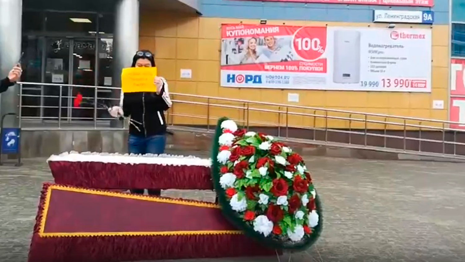 Акцию «похорон» бизнеса, который пострадал из-за ограничений, введенных на фоне пандемии коронавируса, предприниматели провели 20 мая. Владельцы магазинов выставили гроб с цветами и венками перед торговым центром, где располагаются их торговые точки.