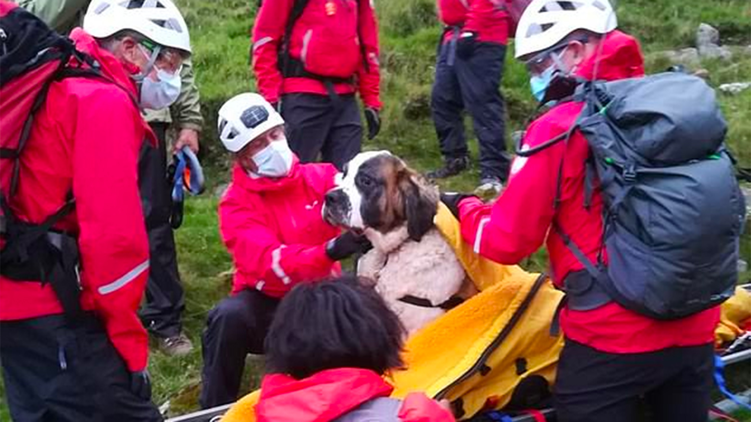 Шестнадцать добровольцев из спасательной команды потратили пять часов на спасение 55-килограммового сенбернара по кличке Дейзи после того, как собака упала с самой высокой горы в Англии в Озерном крае, сообщает Daily Mail.