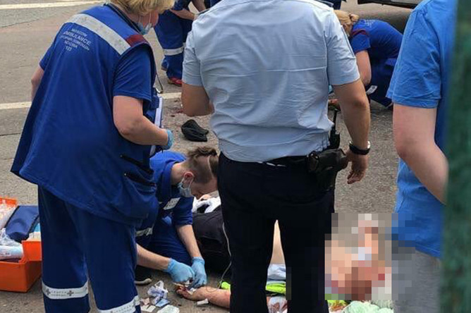 Полиция ищет сбежавшего стрелка, пострадавшего осматривают медики.