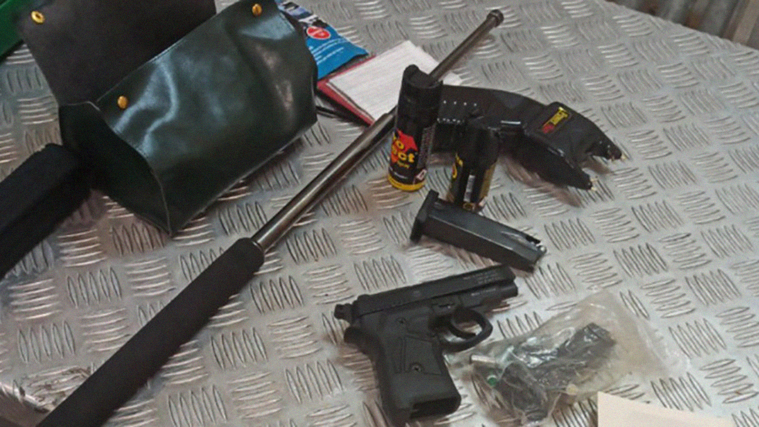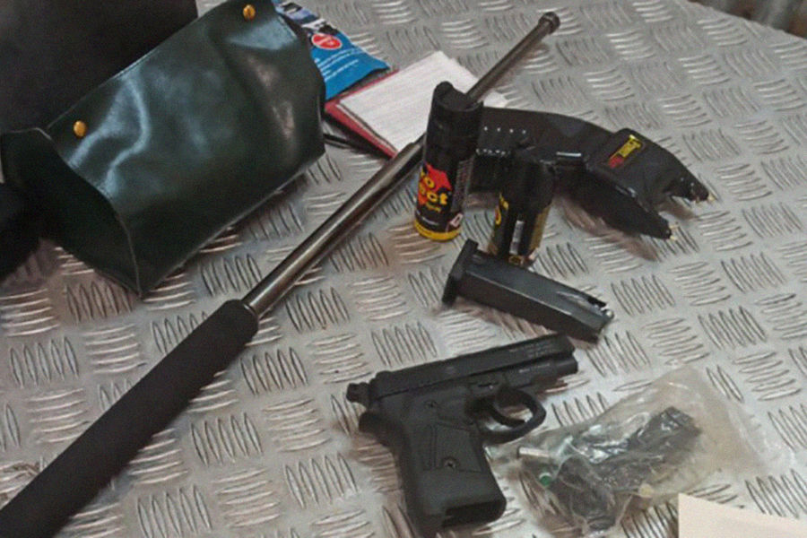 «Пограничный наряд обнаружил в подлокотнике легкового автомобиля пневматический пистолет с двумя магазинами, заряженными 24 шумовыми патронами, а также 10 перцовых патронов. В перчаточном ящике найдено два перцовых баллона и электрошокер, а в нише под водительским сиденьем — телескопическая дубинка», — сообщили агентству.