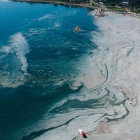 В рамках борьбы со слизью в Мраморном море турецкие специалисты собрали и отправили на утилизацию 5 738 кубометров морской слизи — аномально разросшегося фитопланктона, угрожающего жизням морских животных. Об этом сообщил министр окружающей среды и урбанизации Турции Мурат Курум на своей странице в Twitter.