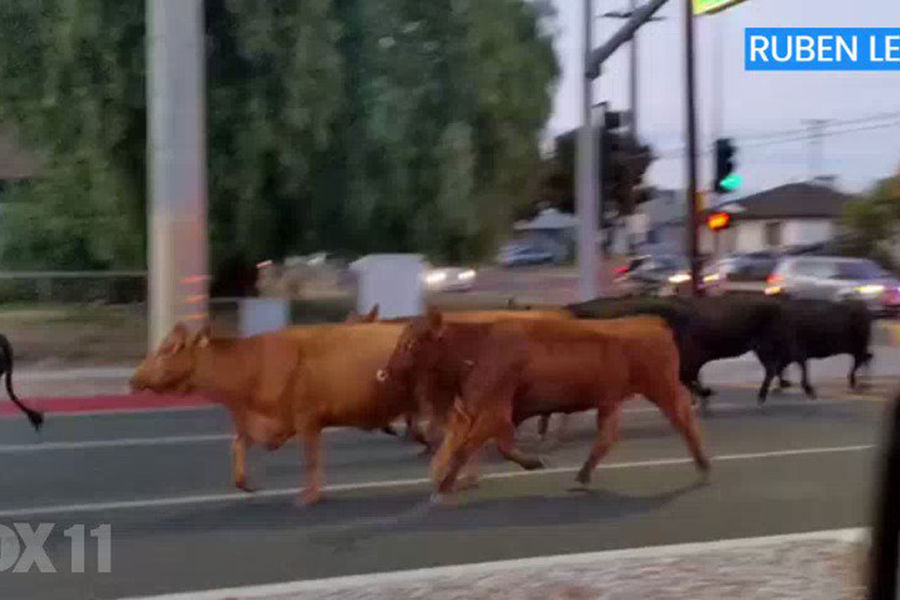 Более 30 коров заметили бегущими по улицам и газонам в городе Пико-Ривера. В связи с чем полицейские рекомендовали местным жителям избегать района, где были встречены парнокопытные.