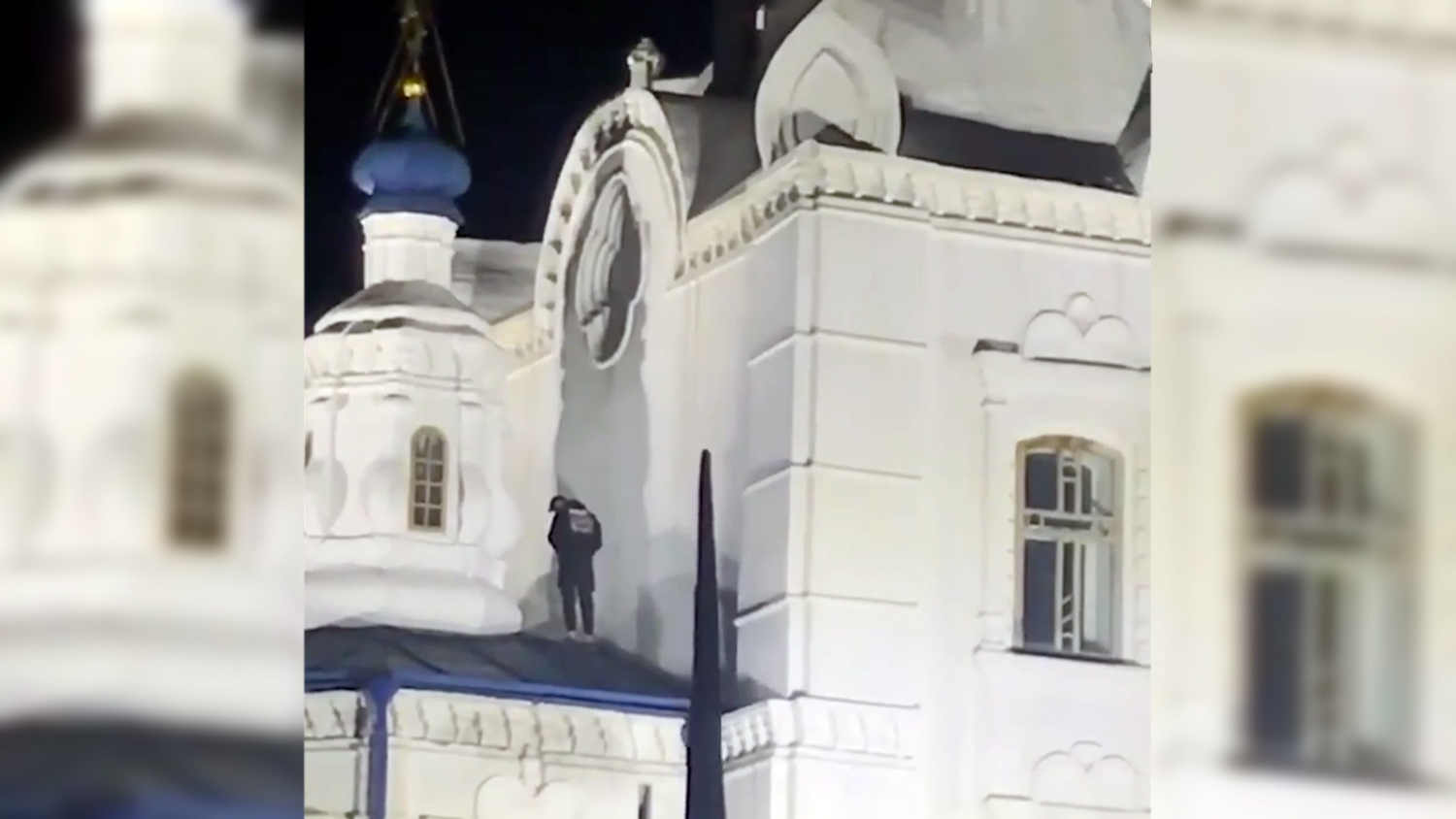 В Улан-Удэ подросток справил нужду на крыше собора, сообщает Telegram-канал Baza.