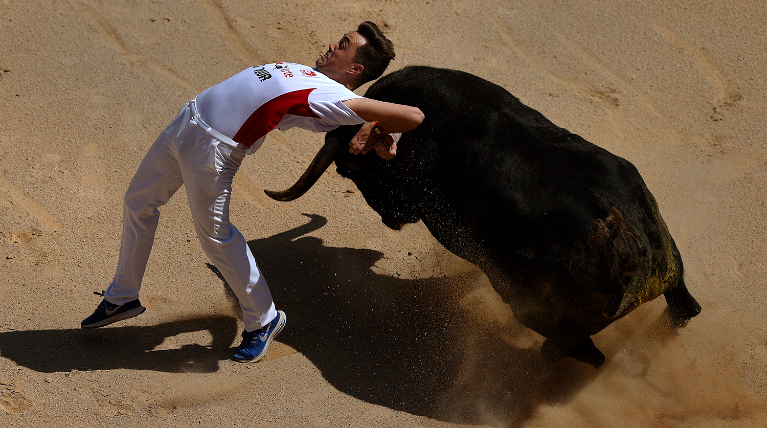 Во время выступления бык успел забодать двух мужчин во возрасте 63 и 74 лет. В публикации отмечается, что одного из них выписали из больницы, а второй выздоравливает после операции.