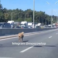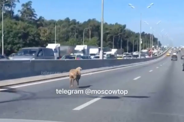 Водители заметили на МКАД барана, который бежал по левой полосе, игнорируя десятки автомобилей вокруг. Видео опубликовал Telegram-канал «Москва с огоньком».