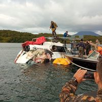 Вертолет с туристами на борту разбился на Камчатке утром 12 августа. Воздушное судно упало в озеро. На борту Ми-8 находились три члена экипажа и 13 пассажиров, один из них ребенок. Восьмерым удалось спастись. Упавший Ми-8 находился в исправном состоянии — он проходил капитальный ремонт в прошлом году. По факту произошедшего возбуждено уголовное дело.