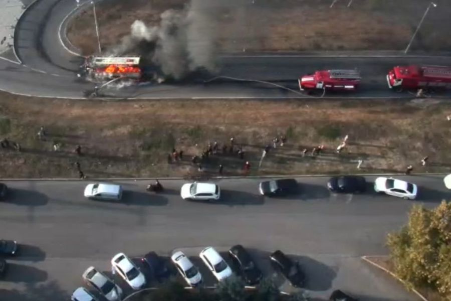 В публикации утверждается, что на момент возгорания в салоне находились 30 пассажиров. Среди них нет погибших или травмированных.