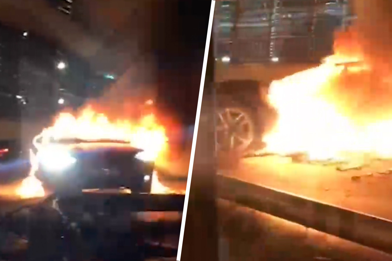В Telegram-канале «Известия» уточнили, что в аварии сгорела Tesla Model S Plaid.