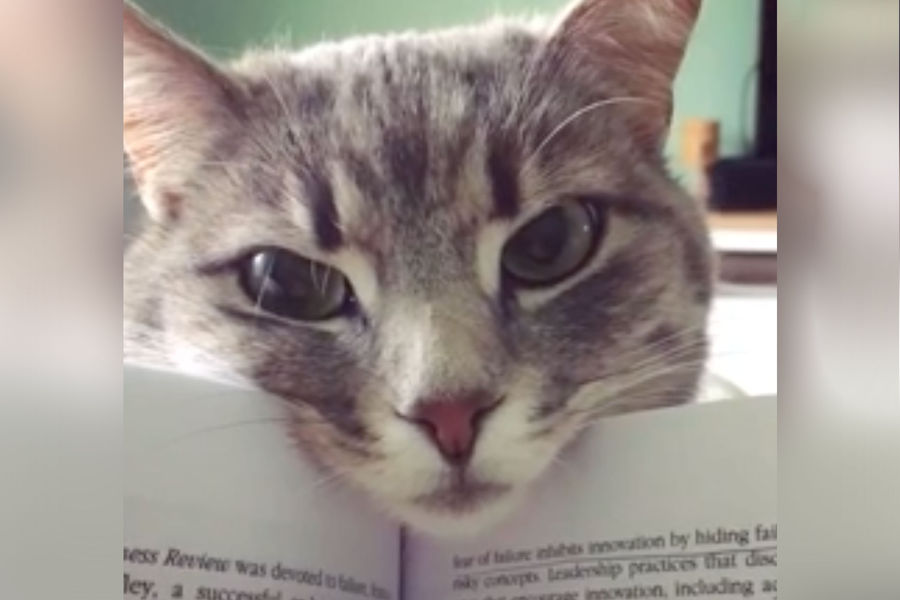 Выложенное пользователем популярного интернет-форума Reddit видео с серой кошкой тигрового окраса, решившей пообщаться с человеком во время чтения книги и положившей мордочку на переплет, умилило пользователей.