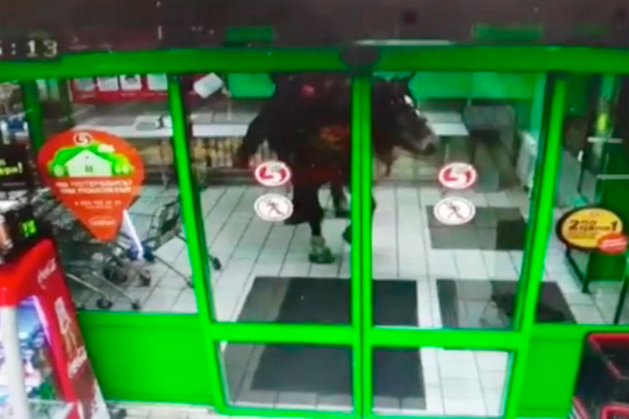 Мужчина въехал в «Пятерочку» верхом на коне в Курской области