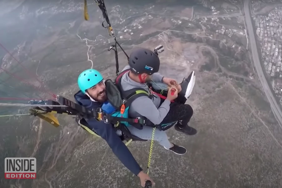 Поднявшись на высоту 1,2 км, Илкнер и Уфук совершили парный прыжок с парашютом. Лозан взял с собой беспроводную тату-машинку, с помощью которой и набил на ноге клиента крылья орла.