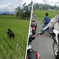 Увидев сотрудников полиции, байкеры бросили свои мотоциклы и побежали в сторону рисового поля, чтобы уйти от преследования. Однако офицеры не стали так легко отпускать нарушителей и бросились вслед за ними, призывая остановиться.