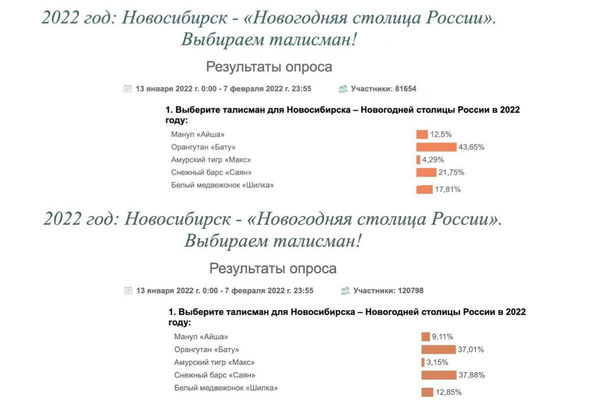 В итоге милое вроде бы мероприятие превратилось в свару. В результате Новосибирский зоопарк, животные которого стали заложниками всего этого, заявил: «Негативный характер происходящего к финалу не вызывает сомнений. Новосибирский зоопарк не заинтересован в таком внимании к нашим питомцам, нам не по душе создание оскорбительных мемов, поэтому мы просим остановить опрос и не учитывать его результаты».