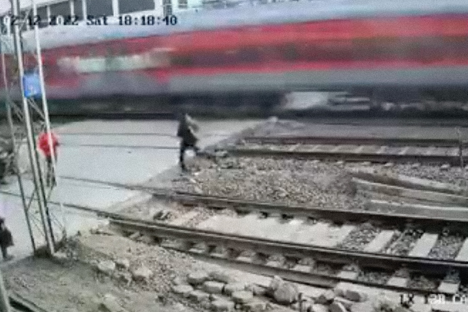 У индийца было несколько секунд. В последний момент он оставил мотоцикл на рельсах и отпрыгнул в сторону — через мгновение состав столкнулся с байком, превратив его в смятую железку. Мужчине повезло больше — он отделался испугом.
