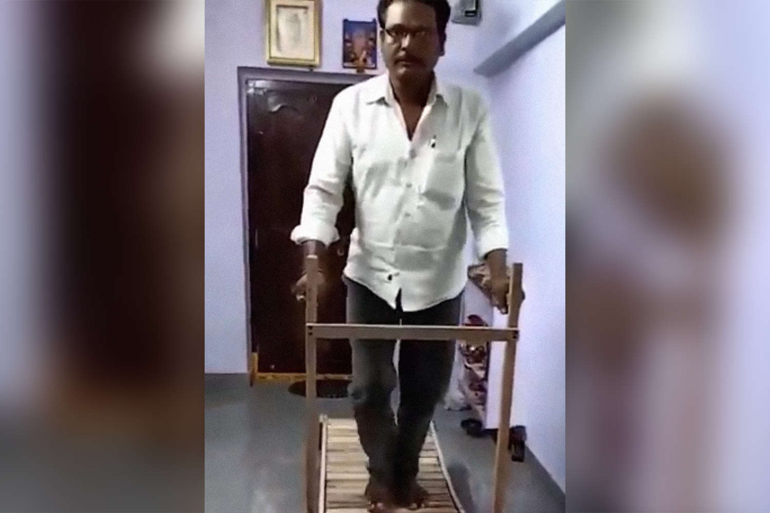 Житель Индии удивил пользователей соцсетей, создав беговую дорожку из дерева, сообщает Indian Express.