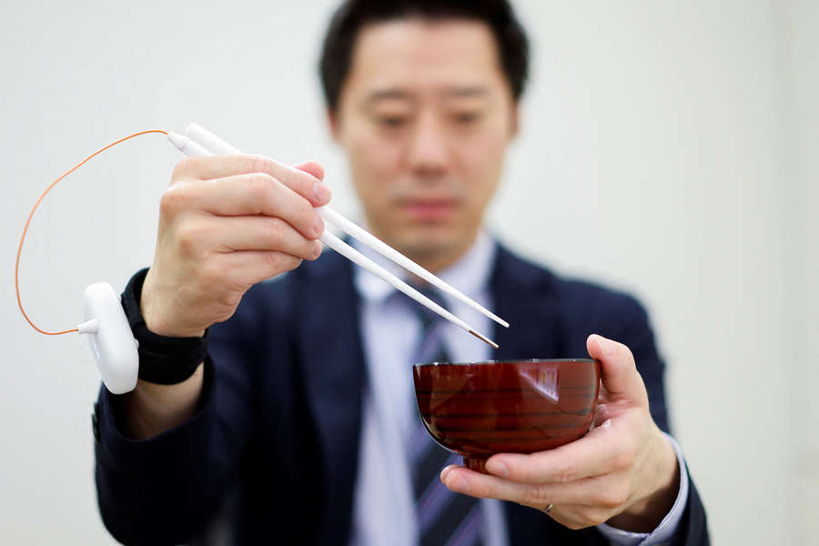 В Японии разработали специальные палочки для еды, которые, работая от специального компьютера, будут усиливать ощущение солености пищи. Об этом сообщает The Guardian.