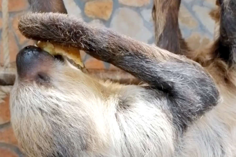 На видео показано, что сначала он ел достаточно активно. Однако в какой-то момент ленивец замер и закрыл глаза. В таком положении он пробыл несколько секунд. Когда его глаза открылись, он снова принялся доедать свой кусок. Затем ленивец опять заснул. Сотрудник показал и его товарища, который тоже обедал. Другой ленивец спать даже не думал.