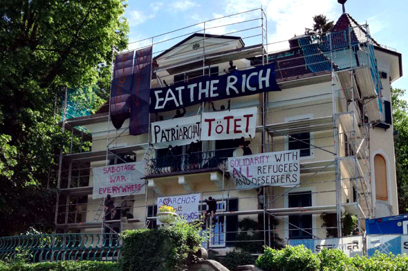 Здание, по данным издания, захватили до 40 человек, называющих себя участниками «союза свободных анархистских организаций». Одна из членов организации заявила, что они не укрепились в здании, но будут оказывать сопротивление полиции.