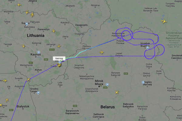 До того, как приземлиться в столице Литвы, самолет около часа кружил над Витебской областью Белоруссии у российской границы.