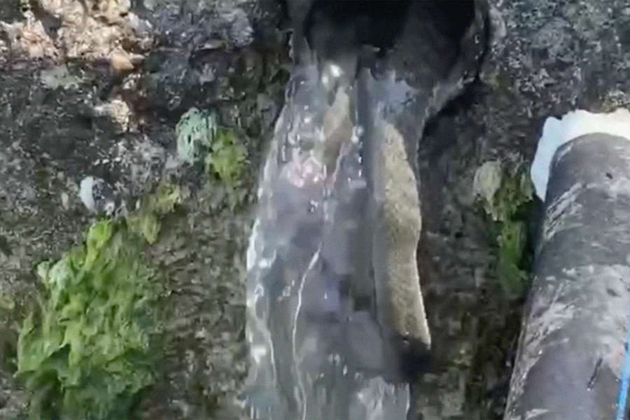В Анапе огромная змея выплыла из трубы с грунтовыми водами в водоем с туристами
