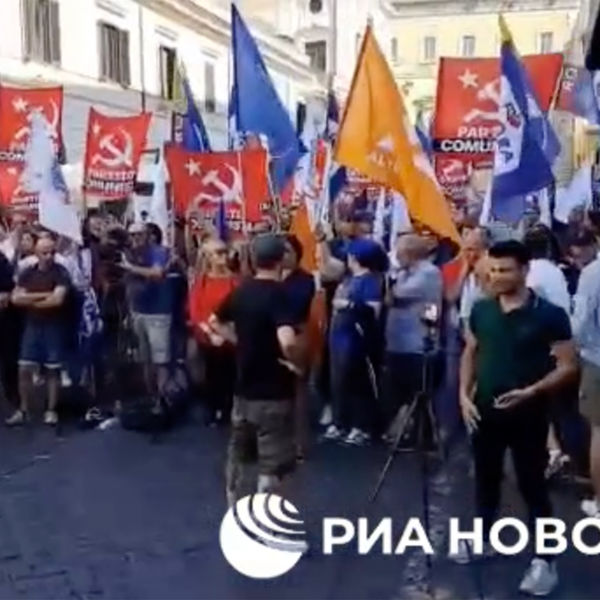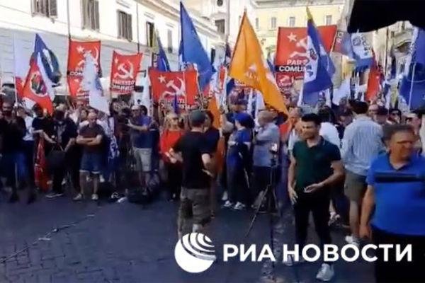 По мнению лидера итальянских коммунистов Марко Риццо, есть огромная разница между тем, что думает итальянский народ, и делами парламента, который преклоняет колено перед НАТО, ЕС и МВФ. Он также раскритиковал встречу Драги с канцлером ФРГ Олафом Шольцем, президентом Франции Эммануэлем Макроном и президентом Украины Владимиром Зеленским в Киеве. По его словам, европейские санкции являются позором и при этом из уст итальянских властей не звучит ни одного упоминания слова «мир».