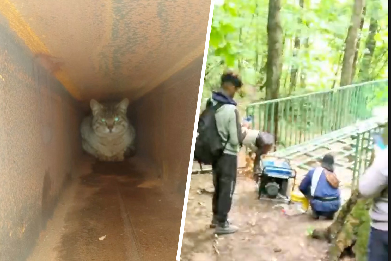 20 июня 2022 года спасатели, как утверждают очевидцы, те же самые, которые отказались пилить мост, вытащили кота из трубы.