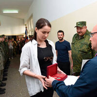«Президент Российской Федерации Владимир Путин своим указом за героизм и мужество, проявленные при выполнении воинского долга, наградил полковника Арсения Сергеевича Павлова орденом Мужества. Перед строем бойцов «Спарты» первый заместитель Руководителя Администрации Президента Российской Федерации Сергей Кириенко вручил награду Елене Павловой – супруге Моторолы», — написал он в своем Telegram-канале.