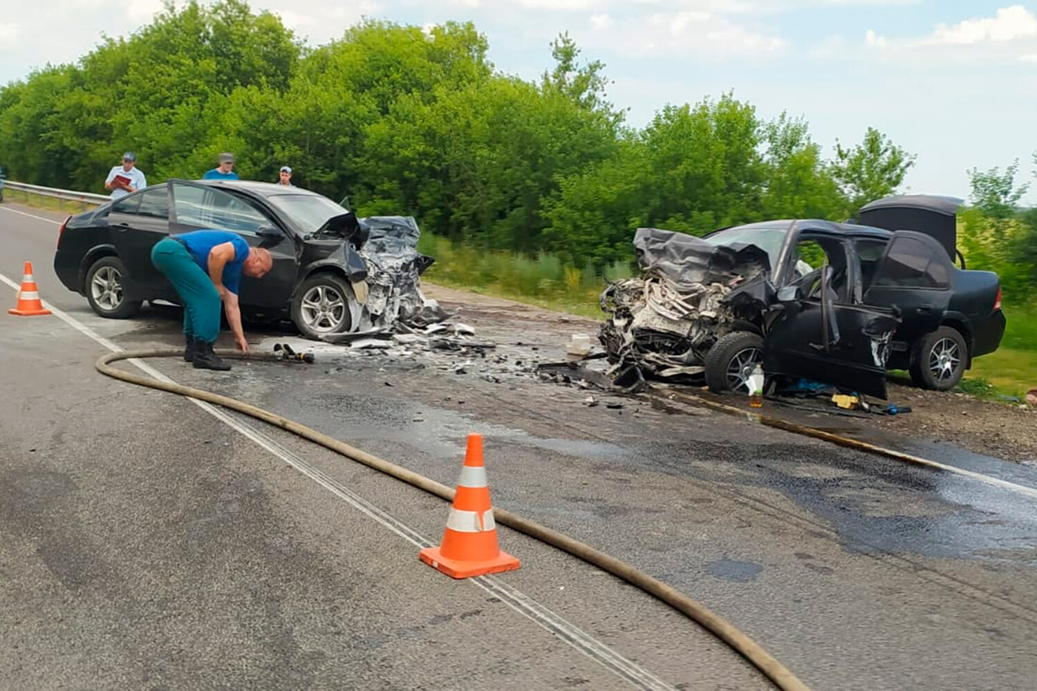 ДТП произошло около 10 утра. По предварительным данным, водитель Nissan Primera выехал на встречную полосу, где столкнулся с легковым автомобилем Nissan Almera. Одно из транспортных средств загорелось в результате аварии.