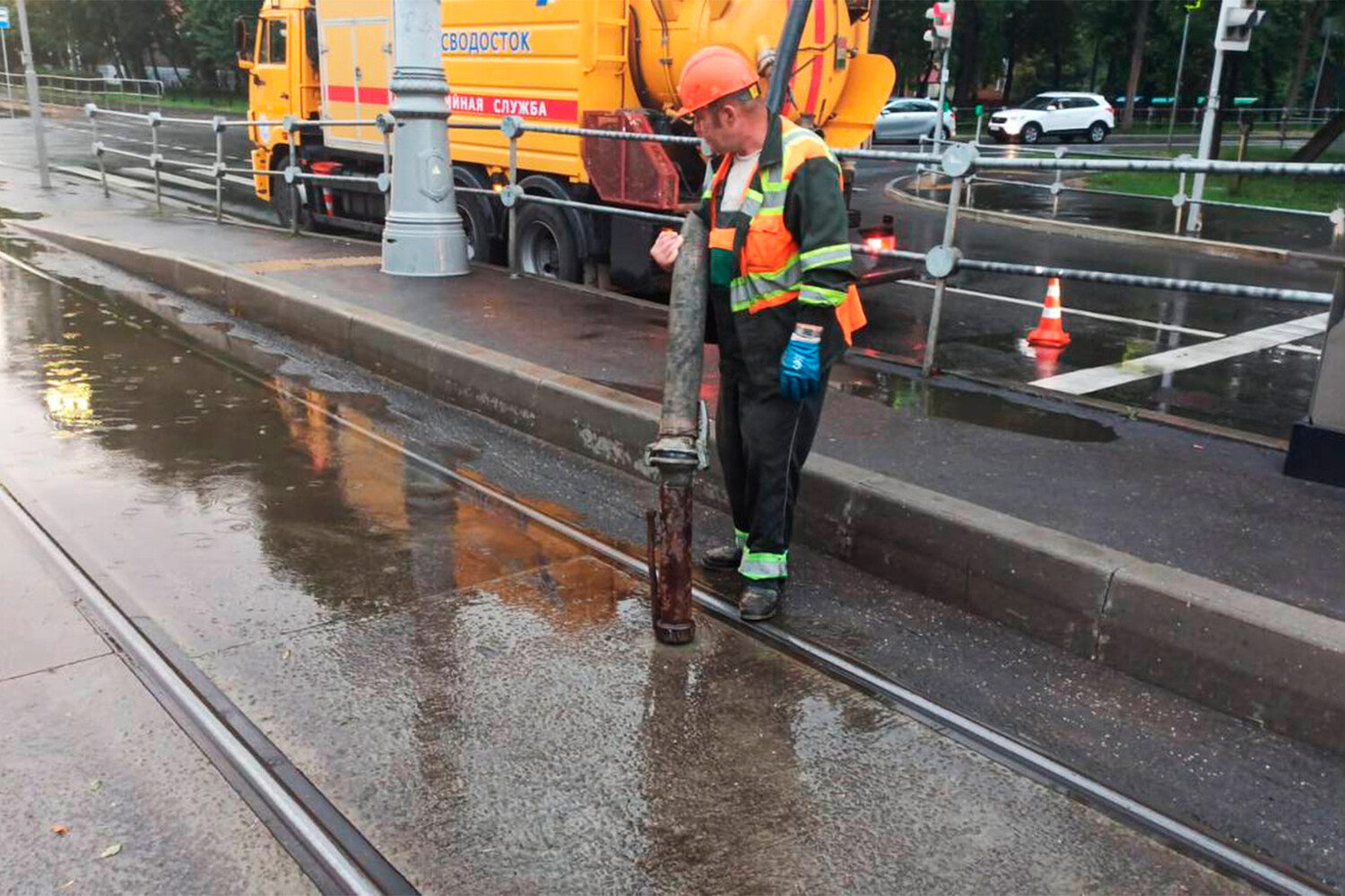 «В Москве наблюдаются кратковременные локальные осадки. На Ивантеевской улице (в районе остановки «5-й проезд Подбельского») проведены работы по откачке скопления воды на трамвайных путях», — сообщили в пресс-службе ГУП «Мосводостока».