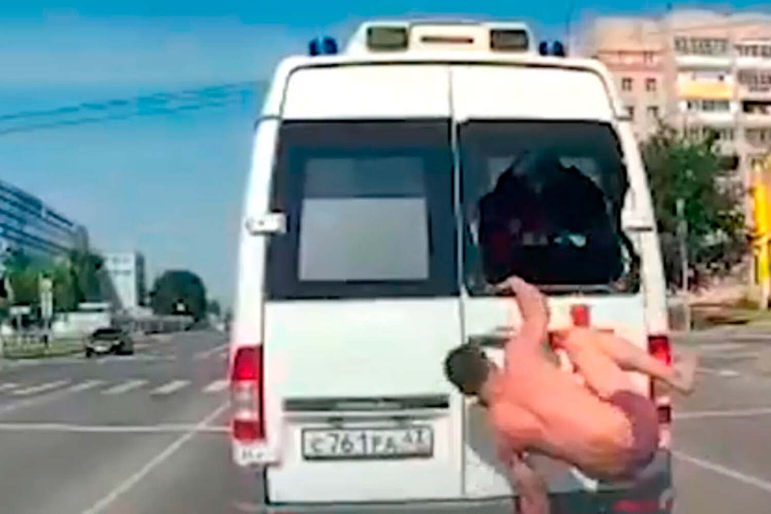 Инцидент произошел в 11 часов 24 июля 2022 года по пути в больницу. Мужчина разбил стекло и выбежал в одном нижнем белье на проезжую часть на перекрестке Чехова-Мальцева.