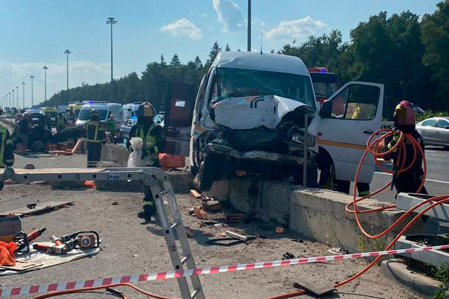 По данным Дептранса Москвы, микроавтобус, врезавшийся в стоящий автомобиль на в 35-м км Киевского шоссе, принадлежит региональному перевозчику ООО «Домтрансавто».